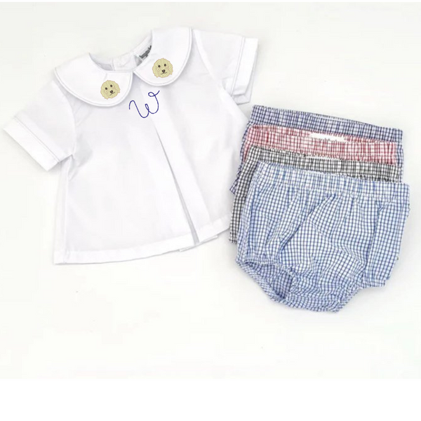 Please state in Order Notes: First Name OR Single Initial done in font pictured. Can add Mini Embroidery designs to the collars. Can do Collar Embroidery ONLY (no name or initial). Specify preference.