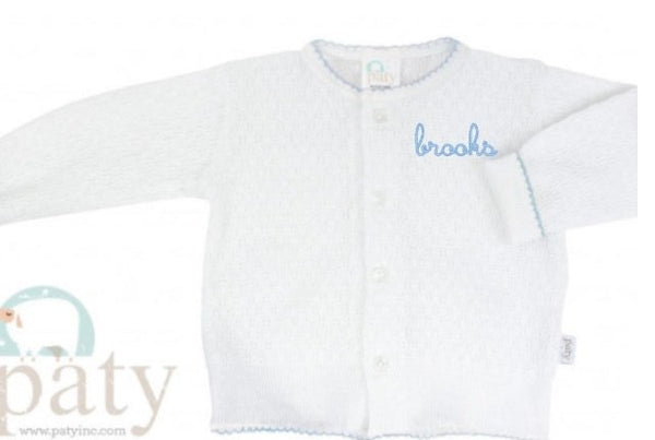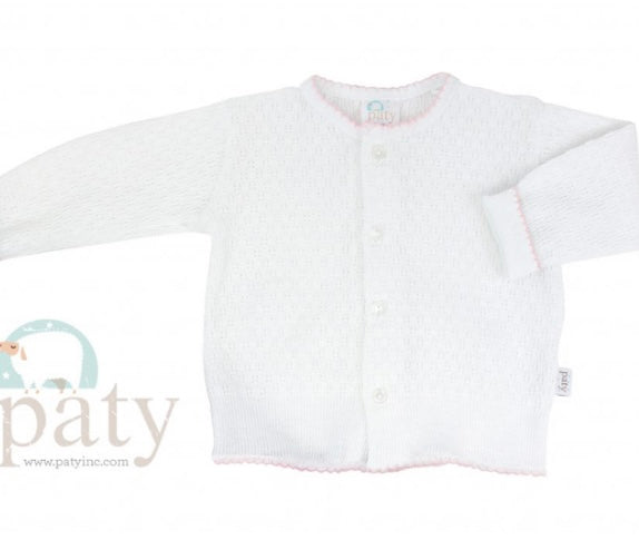Paty Inc Solid White signature, 50/50 blend, Paty knit accented in colored picot trim