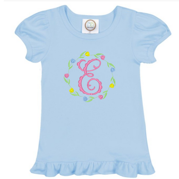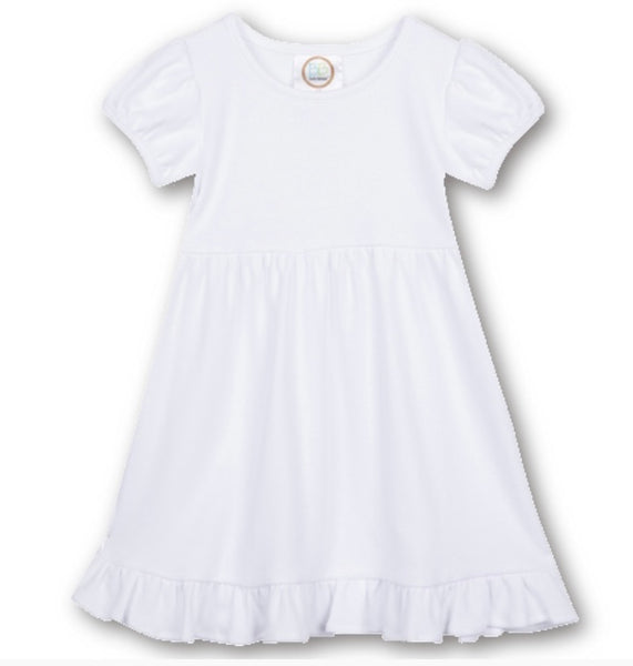 Available on a White or Light Blue Short Sleeve Ruffle Shirt, White Short Sleeve Girl Plain Shirt, White Short Sleeve Ruffle or Plain Dress